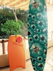 Surf Board Rentals. We have a surf board available at $45 USD for a one week rental. It is a 7′ long BZ Square Tail Tri-Fin Board. It only weighs 4.8kg (11 lbs), so it is perfect for any beach in the area, any size wave.