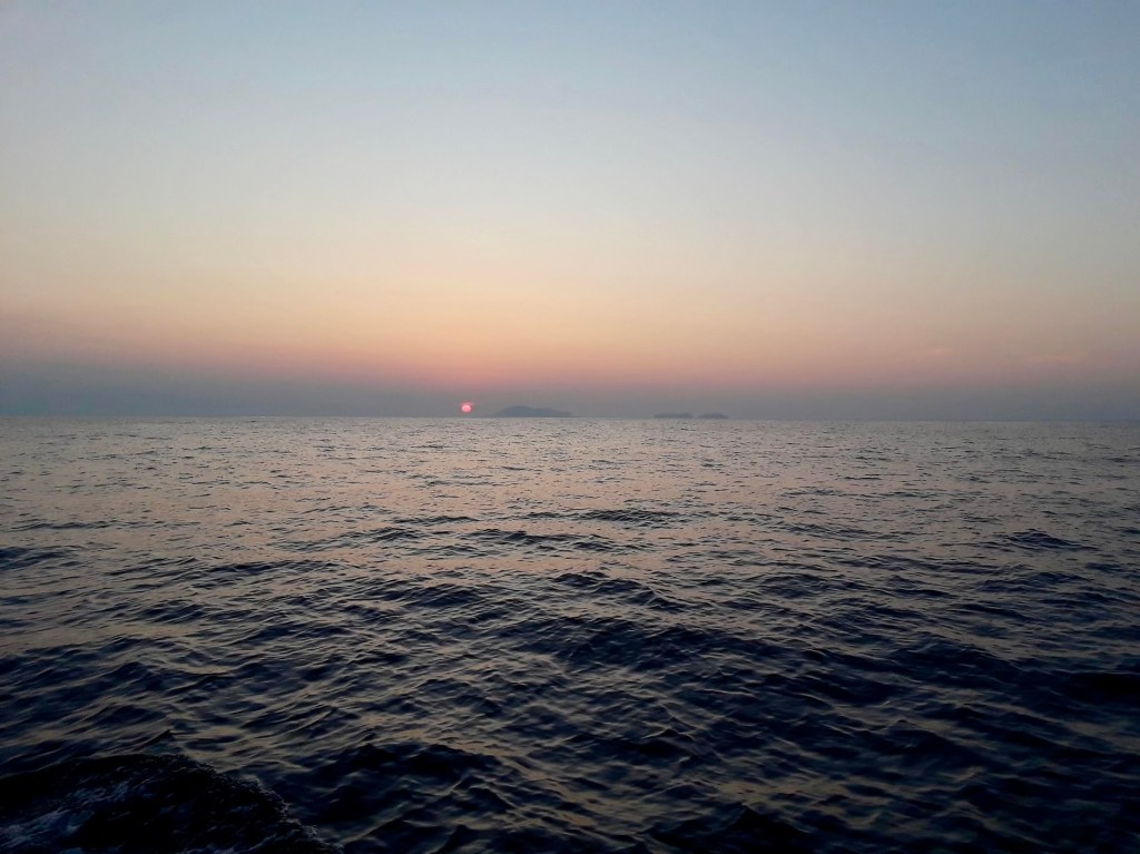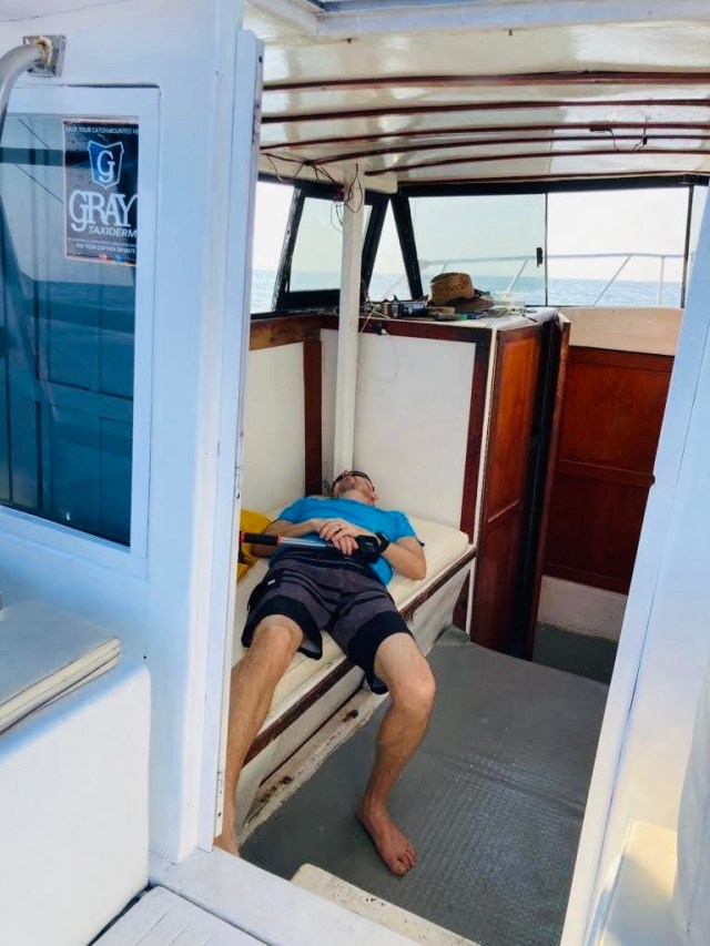 We rode with Edgar and Andy on the Elva III. It’s a 32foot long boat with a decent enough bathroom. Their father has a fishing boat, too, called the Elva II, and their mother is Elva I. I arrived at the pier at 6:35am and the crew was already waiting to push off the dock. Of course I fell getting into the boat. It was nice to see the sunrise as we left the bay and entered the Pacific Ocean. I had taken a motion sickness pill before leaving the house, and for the most part my body held up okay. I did take a nap about 2 hours into our expedition.