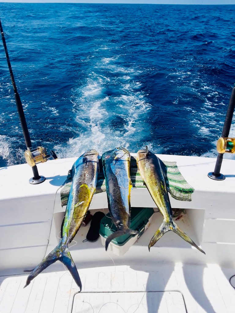 Last week my buddy Robert invited me fishing with him. I hadn’t been fishing in the Pacific Ocean in more than five years, so it seemed like enough time had passed for me to give it another go. I’m generally bad luck when it comes to catching fish. He had rented a boat and crew and we would be trolling for dorado (mahi mahi). Trolling is running multiple lines off the back of the boat as it moves fairly slowly through the water. There’s a lot of watching rods to see if there’s a tug. I asked Robert how he came to choose this boat, and he said he went online and basically did a google search, found reviews, and chose based on that. He has been fishing a few other times over the past several months and has fished on a different boat each time, and gone after different fish each time.