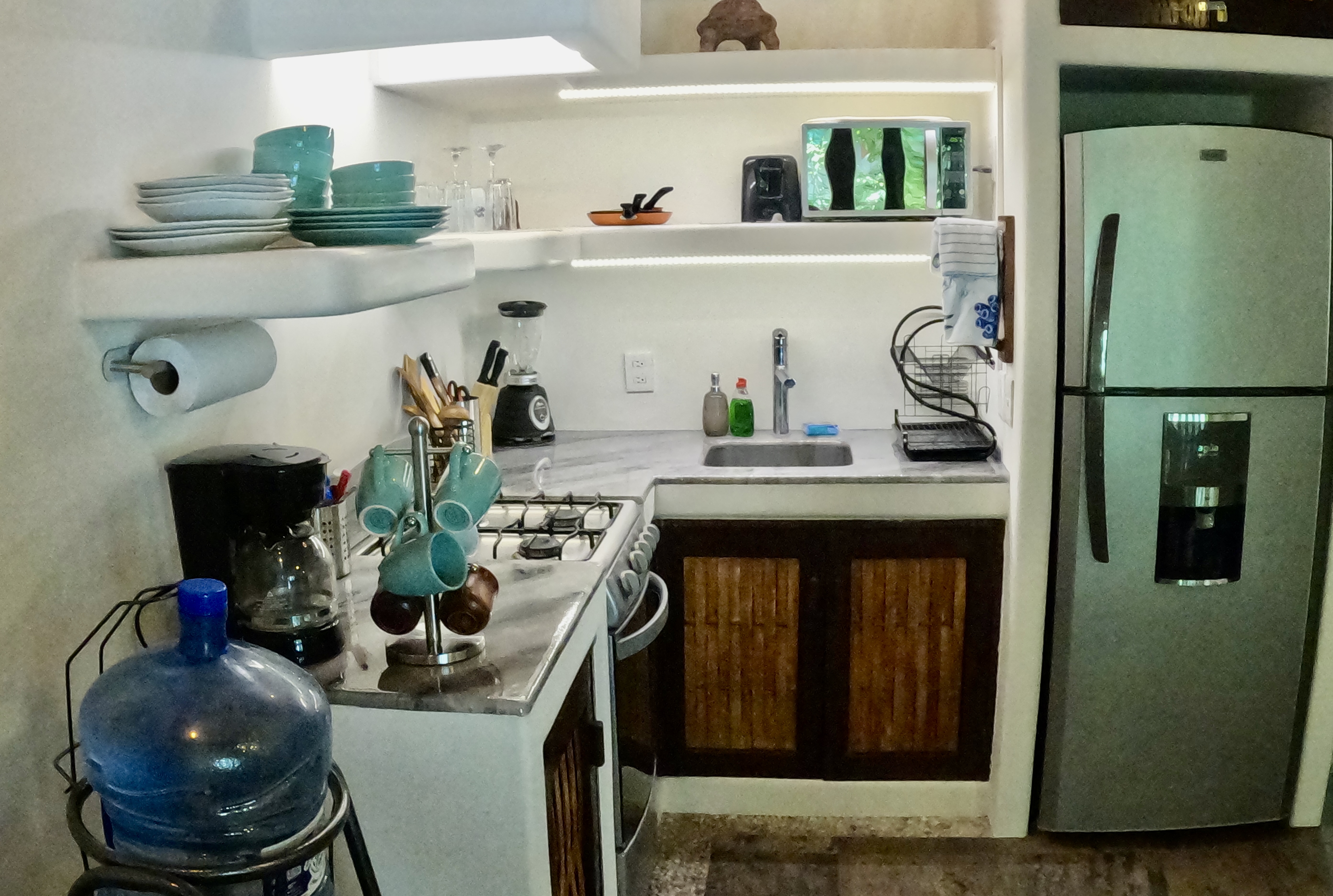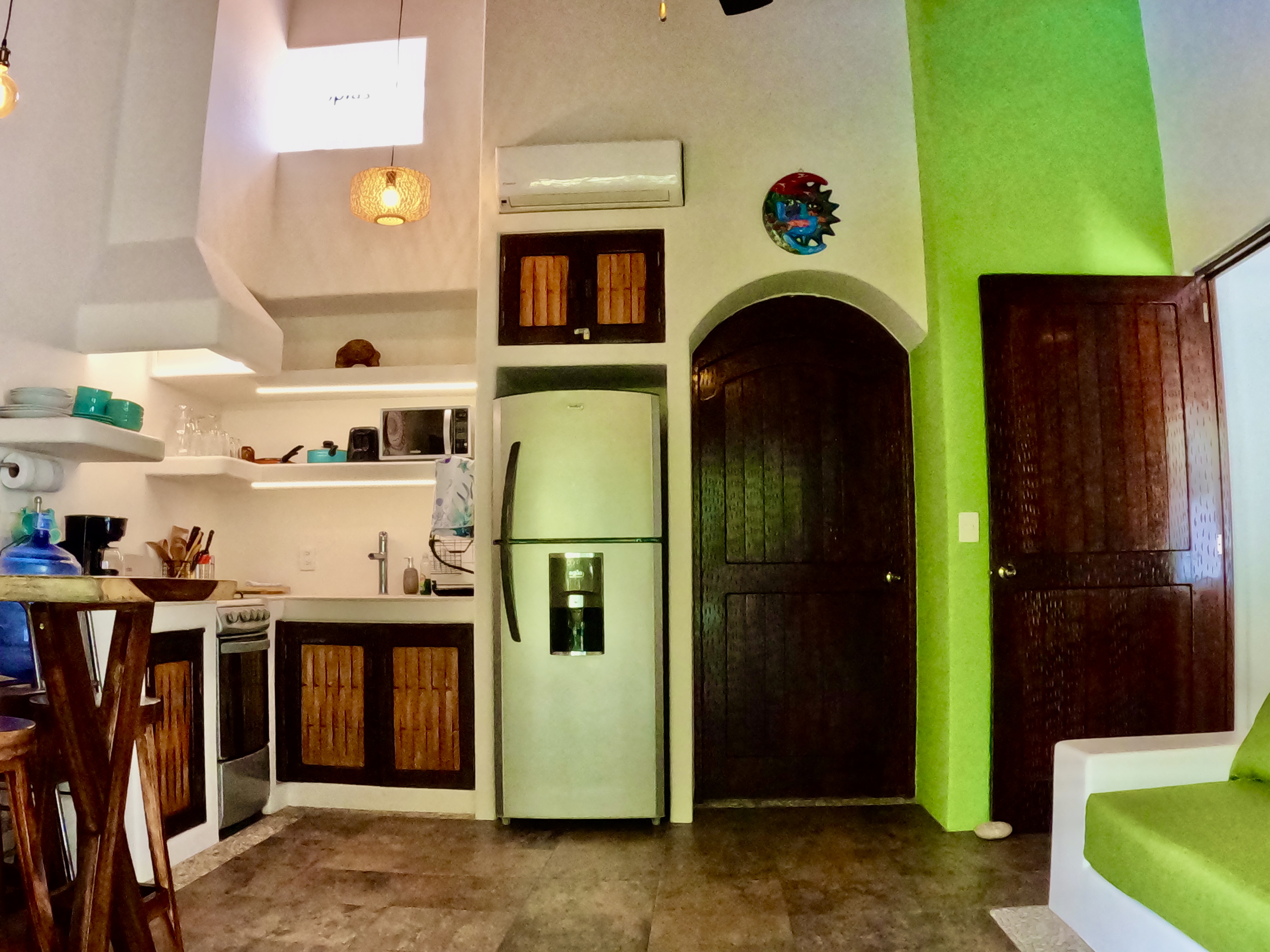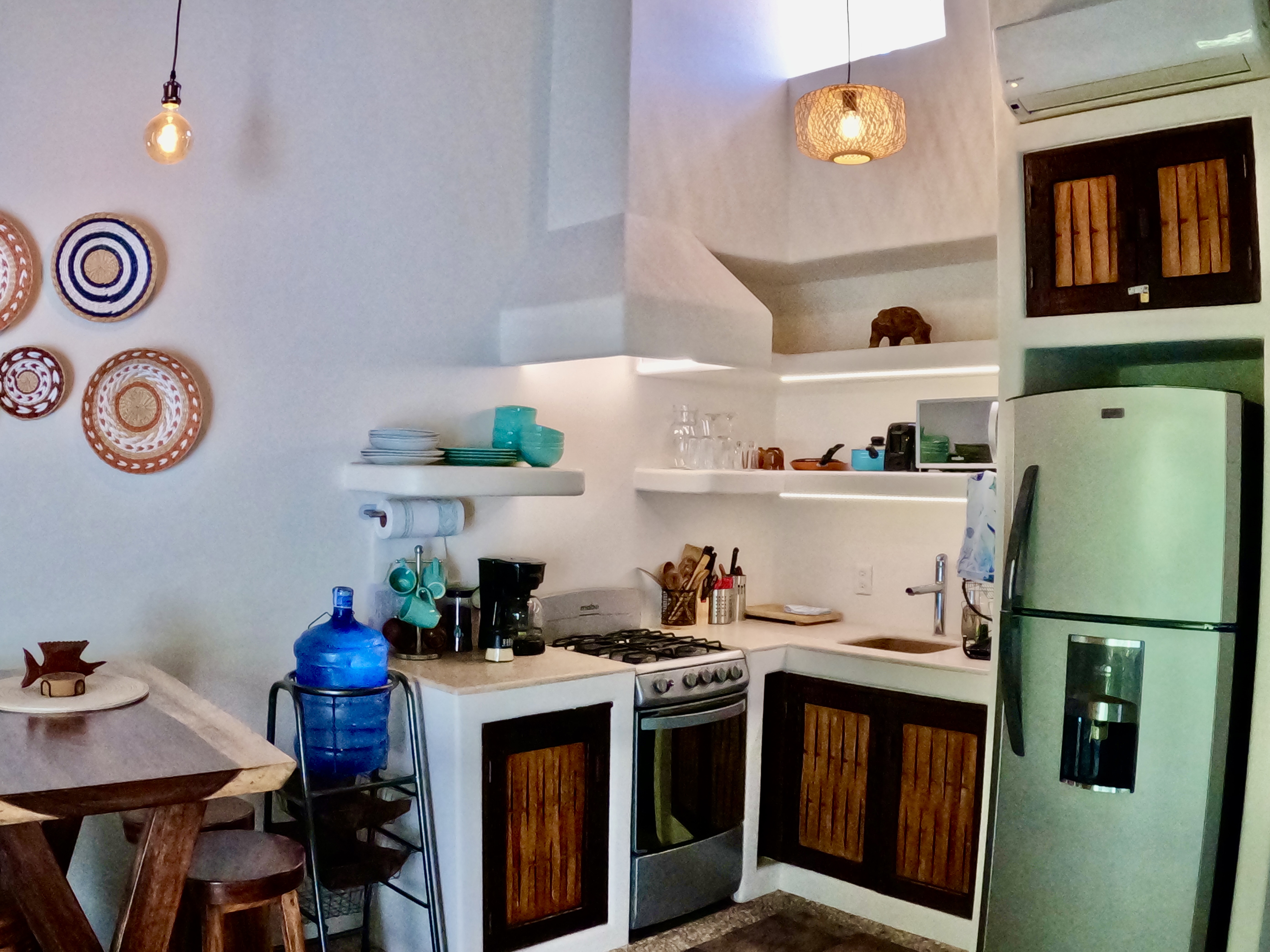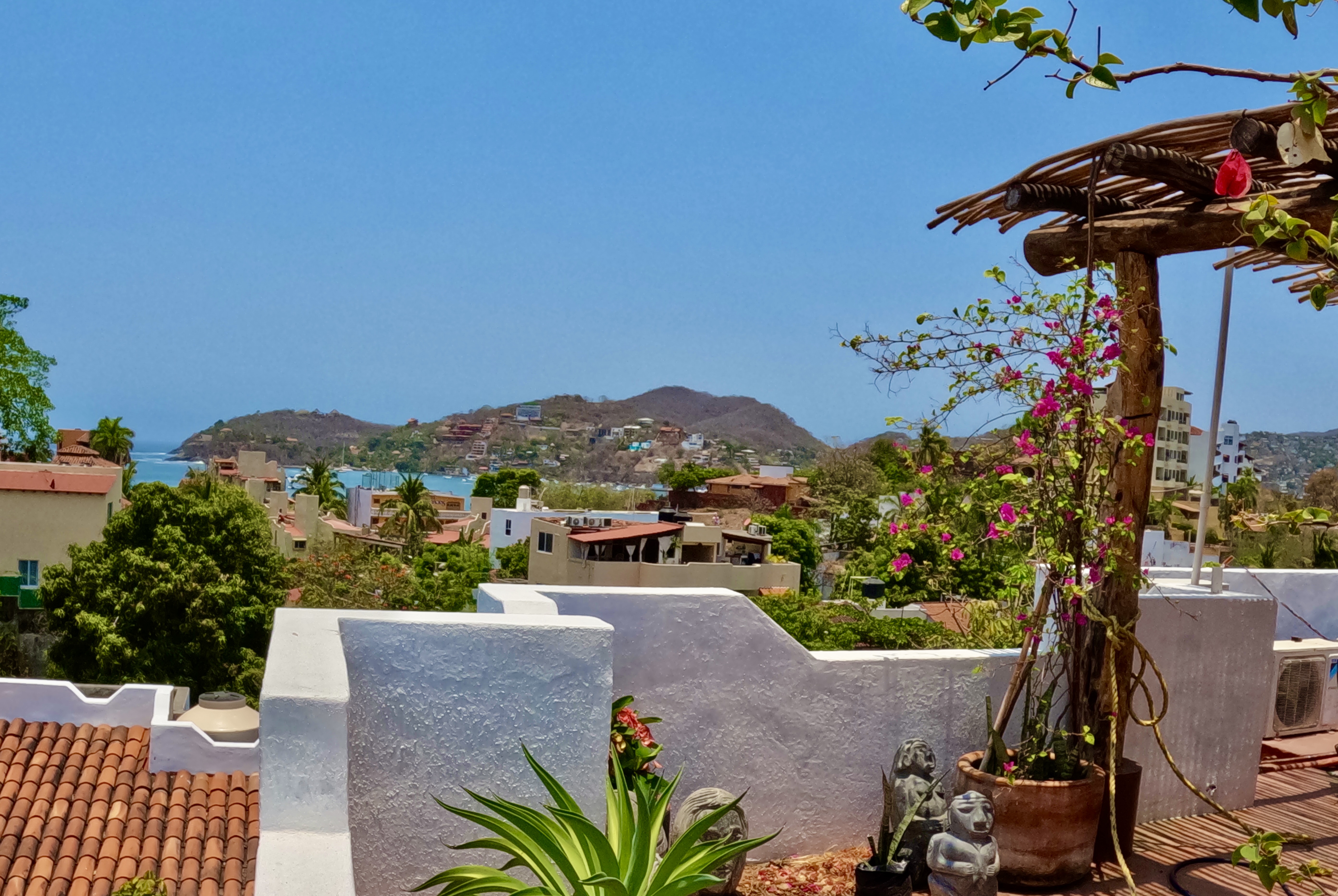 Just a 5 minute walk to Playa La Madera, Casa Kaz is in the heart of Zihuatanejo. A one bedroom, one bath penthouse unit located in the popular Ceiba Studio Condominios. This casa features high ceilings and 2 air conditioners with great air flow through the casa. With pool views from the terrace, the casa has a fully-equipped kitchen, seating for meals, a comfortable couch, a terrace, 2 televisions, high-speed internet, lots of closet space, and is located in a private and secure complex. Towels and linens are provided to guests, with weekly housekeeping.